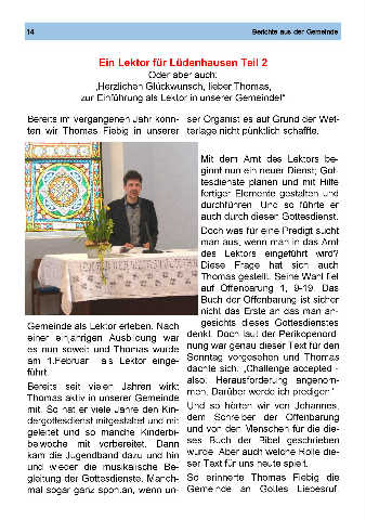 Gemeinde als Lektor erleben. Nach gesichts dieses Gottesdienstes